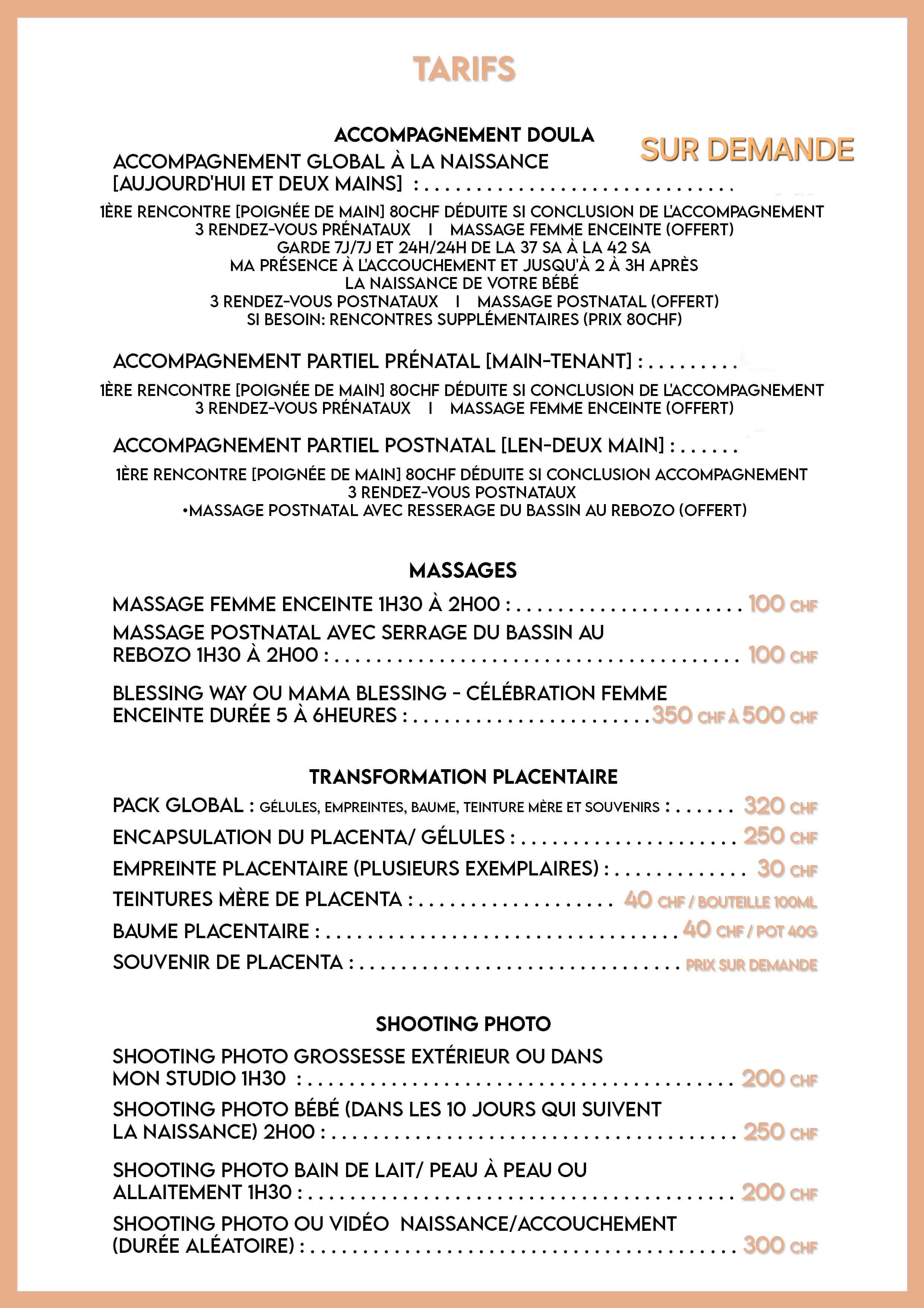MES PRESTATIONS EN TANT QUE DOULA